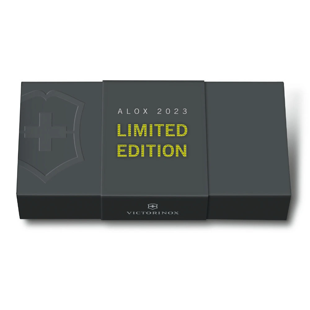 This bold, bright electric yellow-colored Pioneer X has Alox handles, which are punched from aluminum, embossed, anodized and coated with a protective layer to keep them safe from the effects of use and corrosion. The back panel of this limited edition Pioneer X is engraved with the year, 2023, and the tool is housed in a handsome presentation gift box featuring the Victorinox logo.